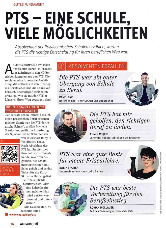 Durch das Erleben von unmittelbaren Alltagssituationen und Anforderungen des späteren Berufes erfolgen eine sehr konkrete Orientierung und eine damit verbundene Zufriedenheit mit der Berufswahl. Durch die PTS finden Schüler und Schülerinnen nicht irgendeine, sondern die passende Lehrstelle. Studien haben bewiesen, dass Schüler und Schülerinnen aus Polytechnischen Schulen einen signifikant geringeren Wechsel des Lehrberufes und der Lehrstelle aufzeigen. Auch die Politik würdigt die hervorragende Arbeit, die an den Polytechnischen Schulen geleistet wird. Es herrscht parteiübergreifender Konsens, dass die Polytechnische Schule nicht abgeschafft, sondern gezielt weiterentwickelt und attraktiviert werden soll. Gemeinsam haben alle Parlamentsfraktionen eine Stärkung und Weiterentwicklung der Polytechnischen Schule vereinbart, die der zentralen Brückenfunktion dieser Schulform gerecht wird. Die Polytechnische Schule als Verbindung zwischen Abschluss der Pflichtschule und dem Einstieg in das Berufsleben bzw. als Vorbereitung für eine weiterführende Schule wurde von allen Bildungssprecherinnen und Bildungssprechern als entscheidend für Jugendliche erkannt.
